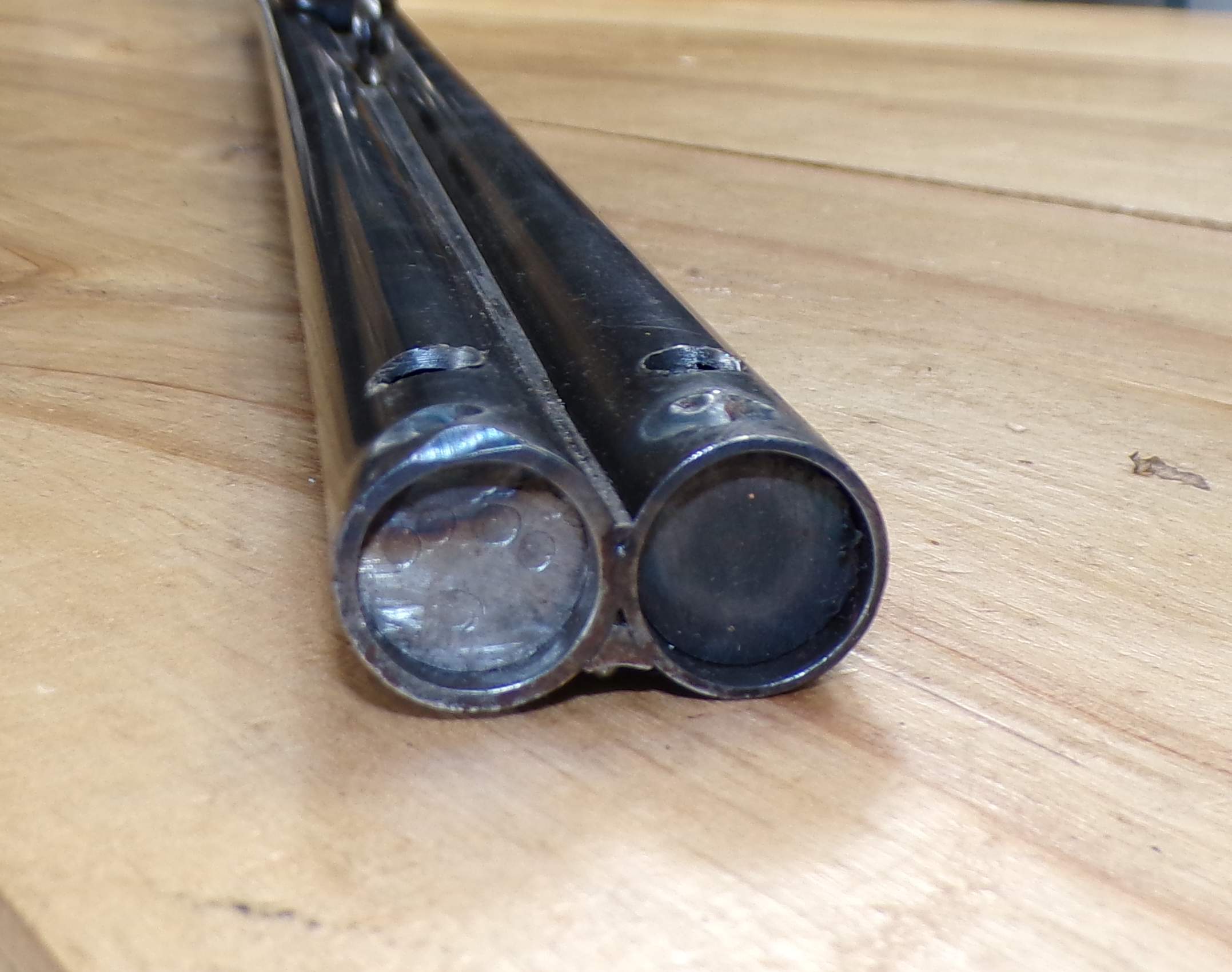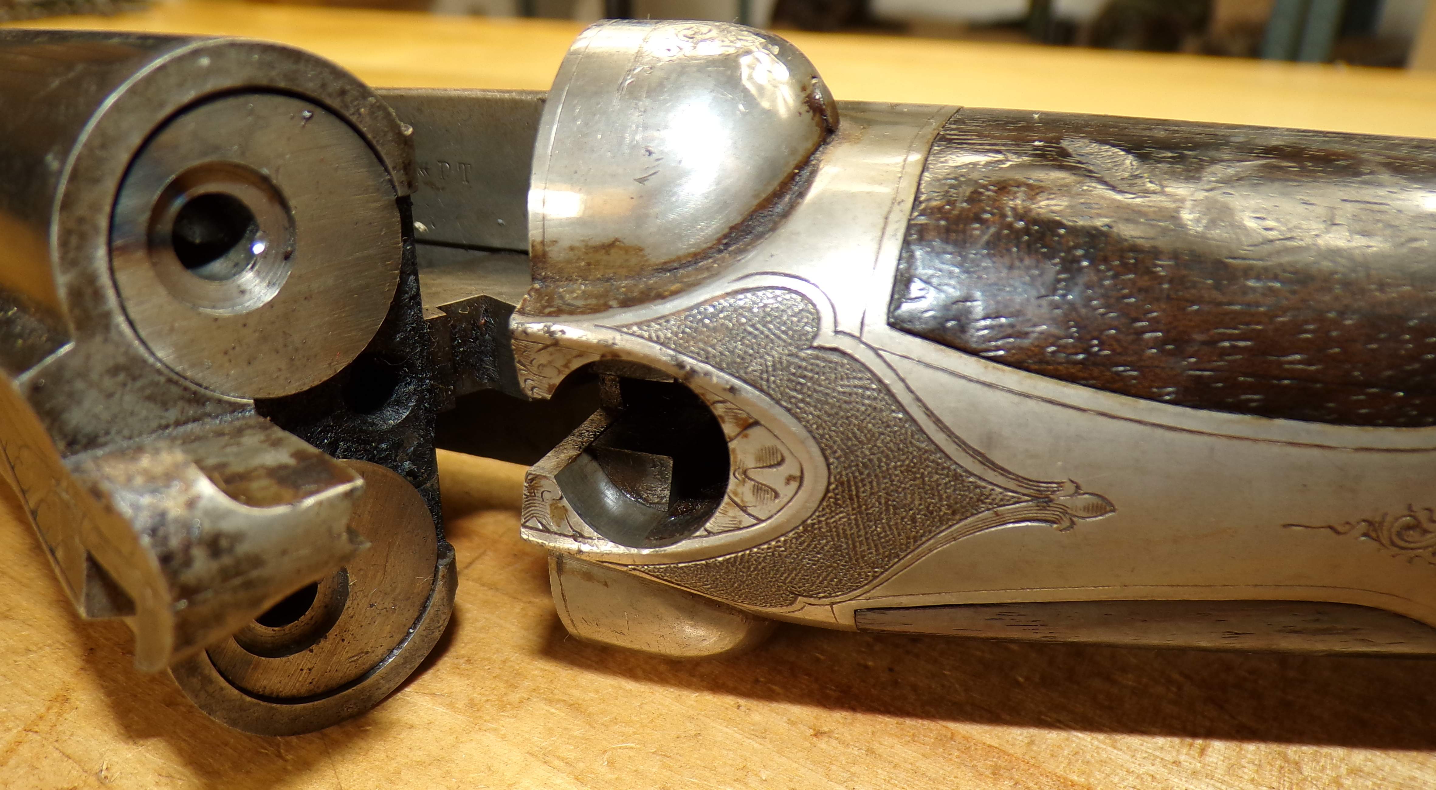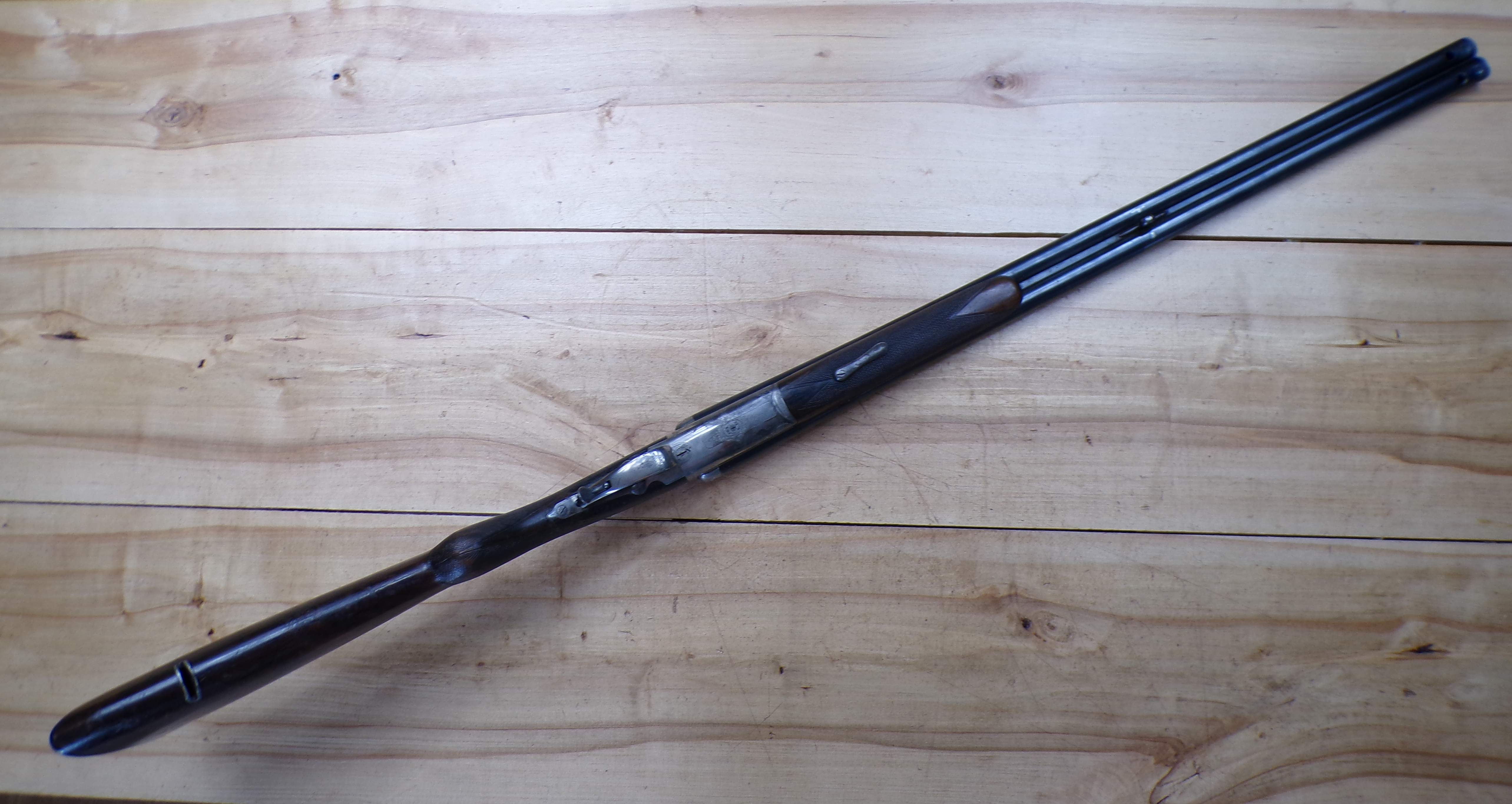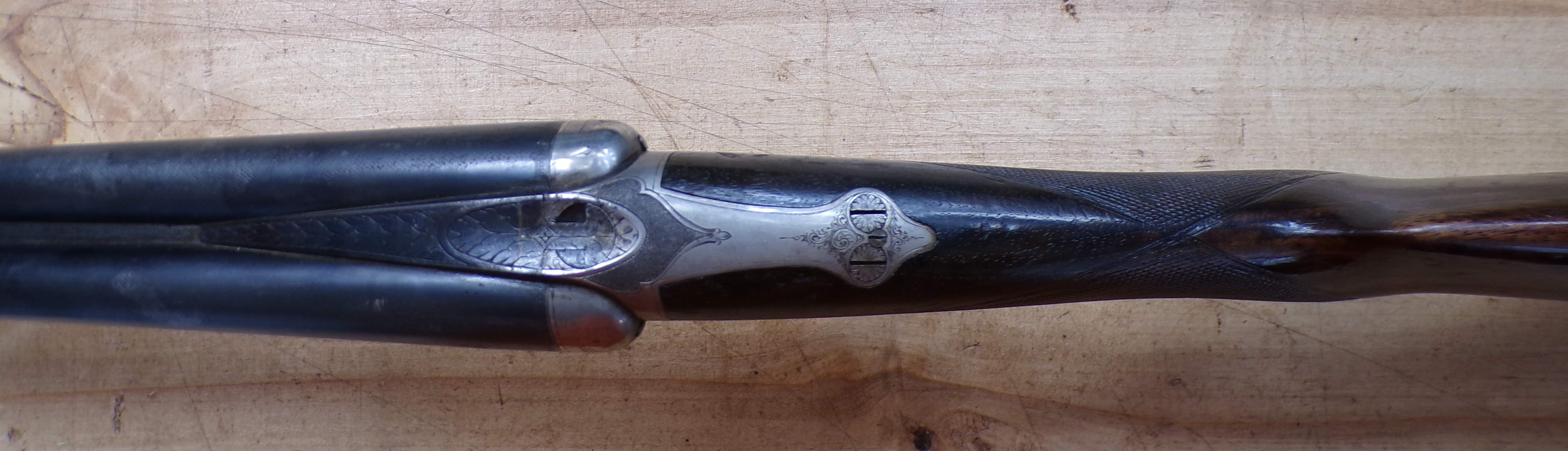 Stan dobry, na lufie są odciski płótna w które zawinięta przeleżała gdzieś lata. Ciekawy francuski system napinania kurków i otwierania luf za pomocą klucza umieszczonego przy kabłąku a nie na wierzchniej części basklili jak zazwyczaj. Wszystkie części oryginalne, drewno nie popękane. Płetwa kolby była przedłużana. Na lufie i baskili są stemple odbiorcze CIP.