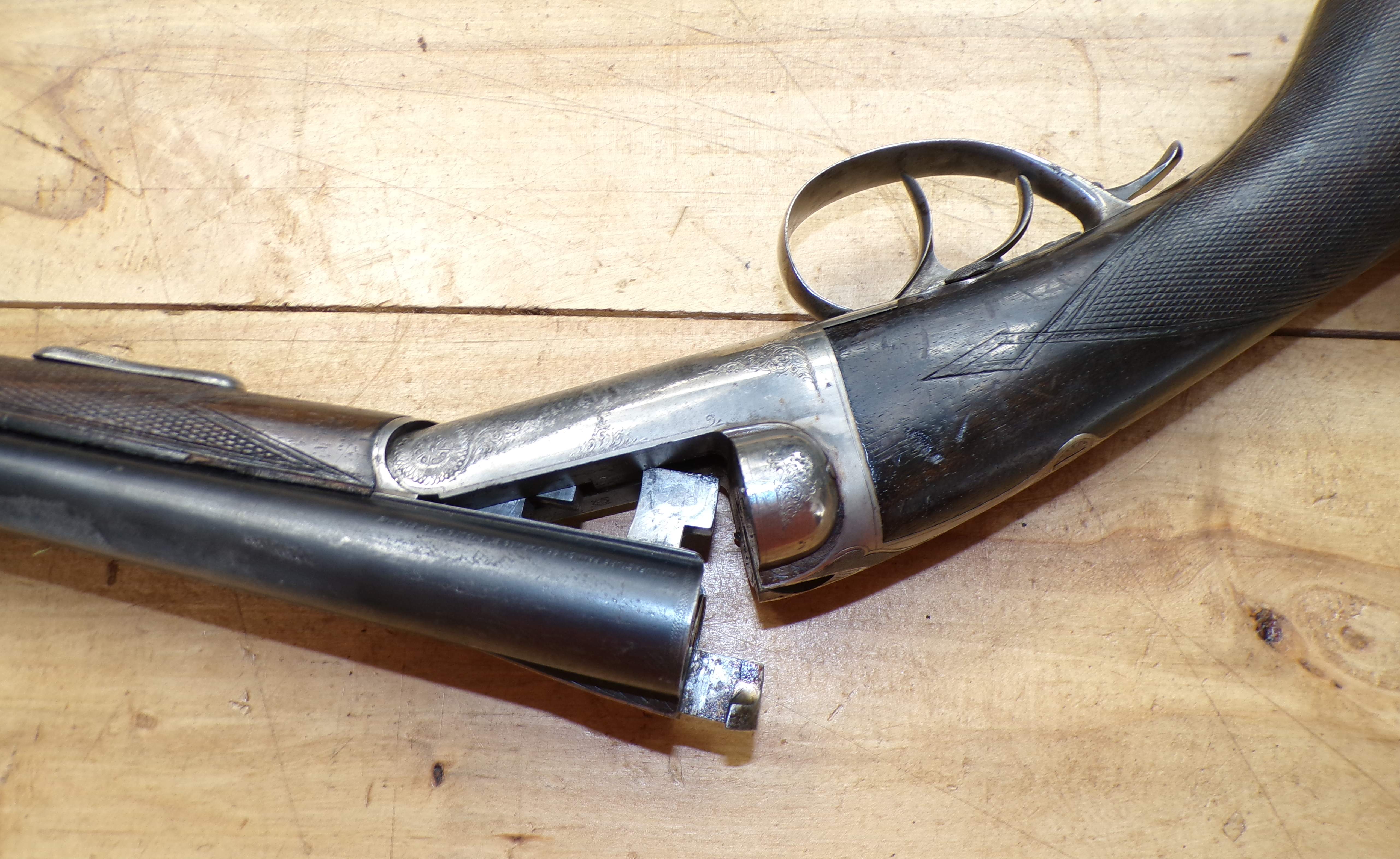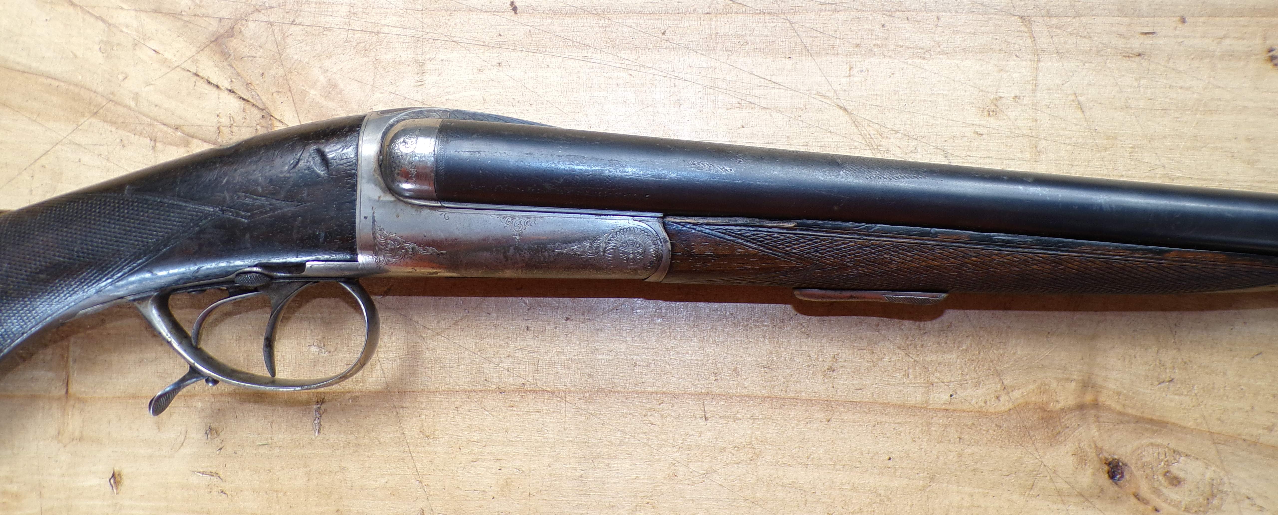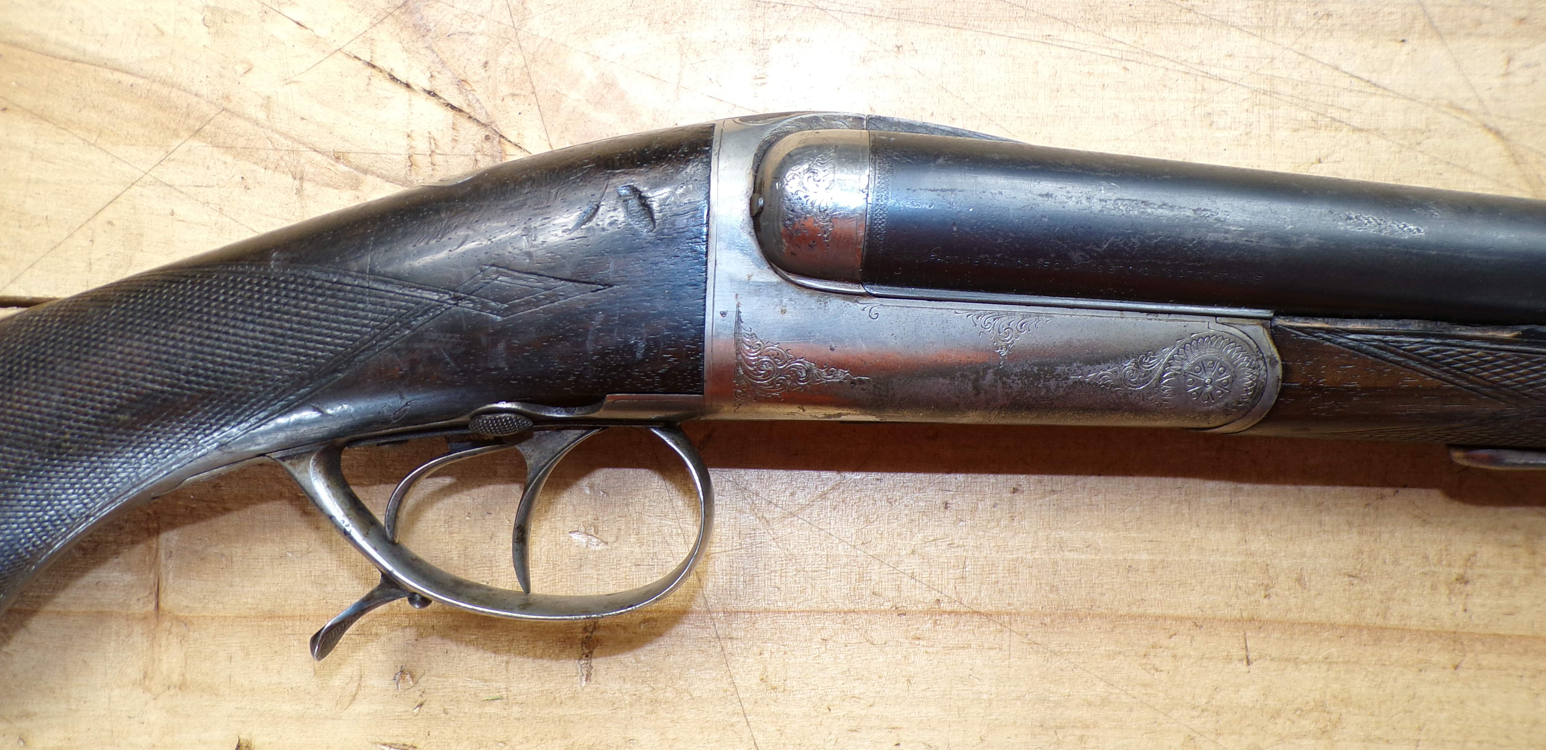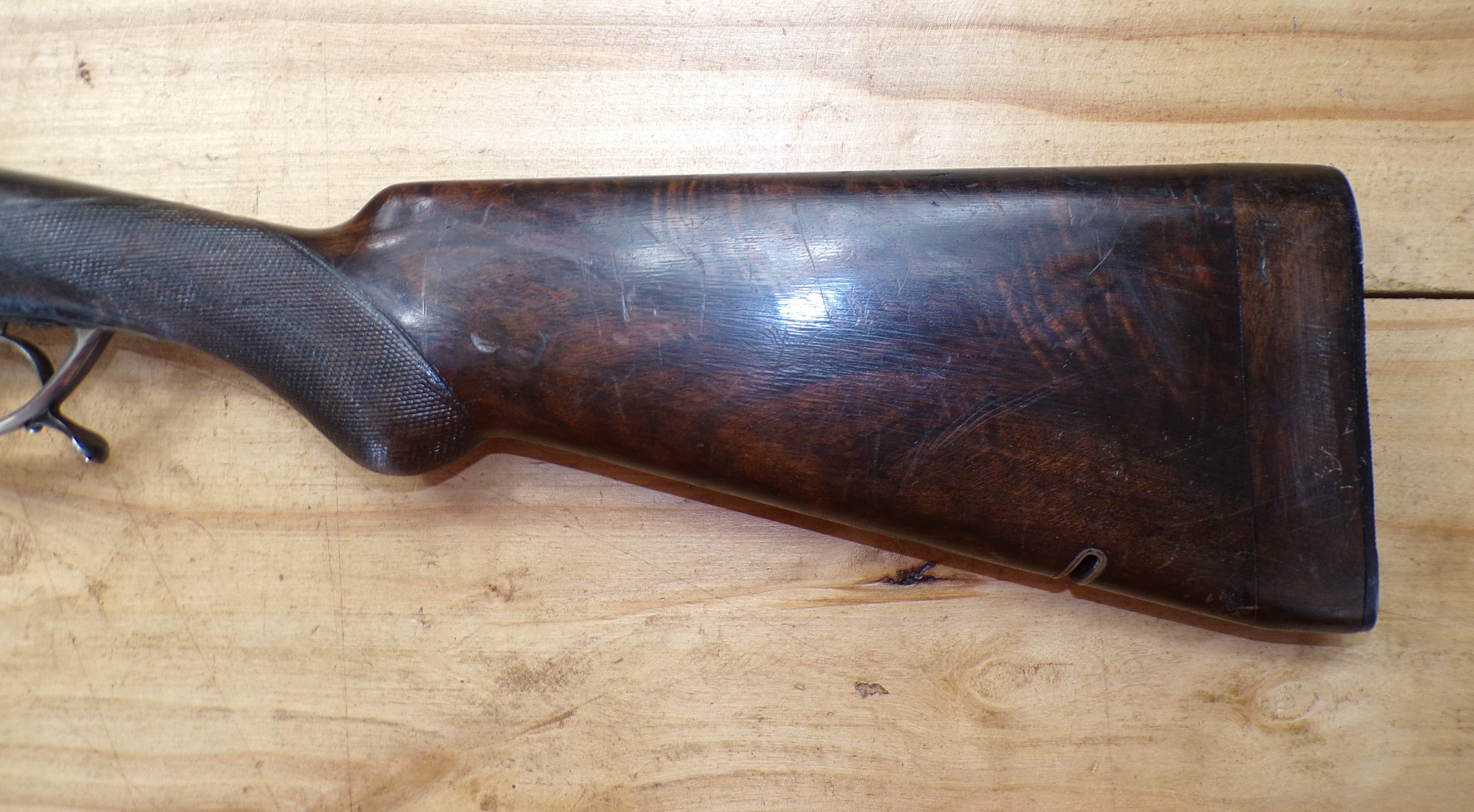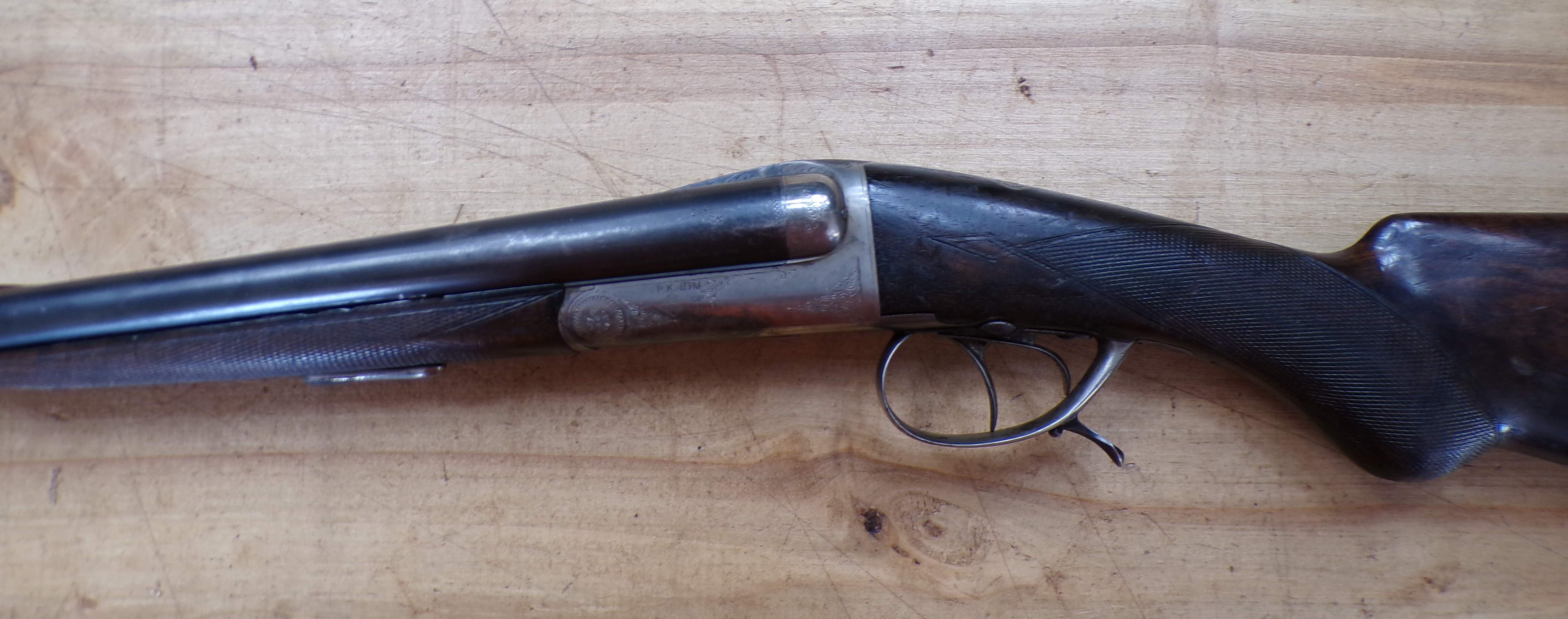 Stan dobry, na lufie są odciski płótna w które zawinięta przeleżała gdzieś lata. Ciekawy francuski system napinania kurków i otwierania luf za pomocą klucza umieszczonego przy kabłąku a nie na wierzchniej części basklili jak zazwyczaj. Wszystkie części oryginalne, drewno nie popękane. Płetwa kolby była przedłużana. Na lufie i baskili są stemple odbiorcze CIP.
