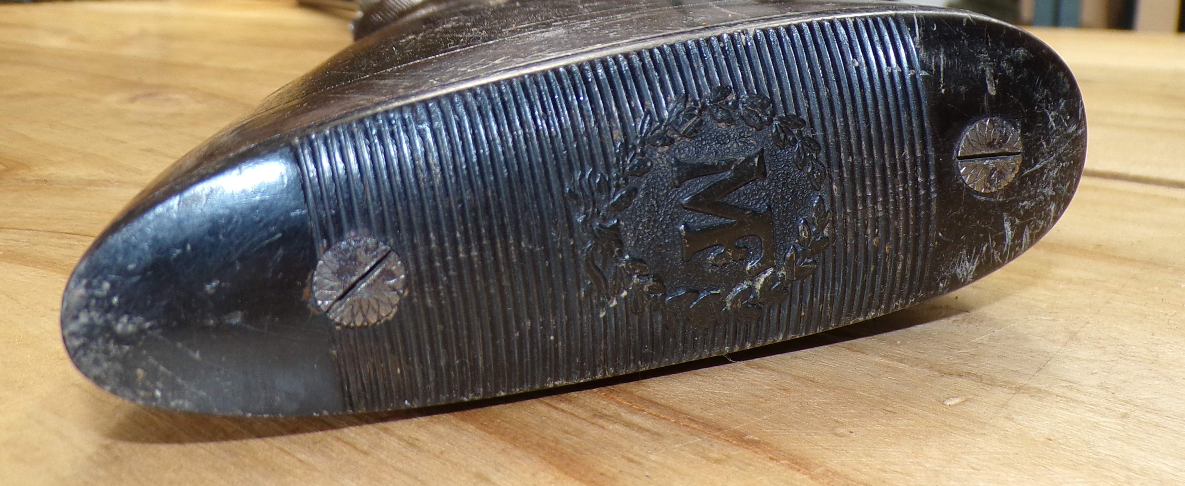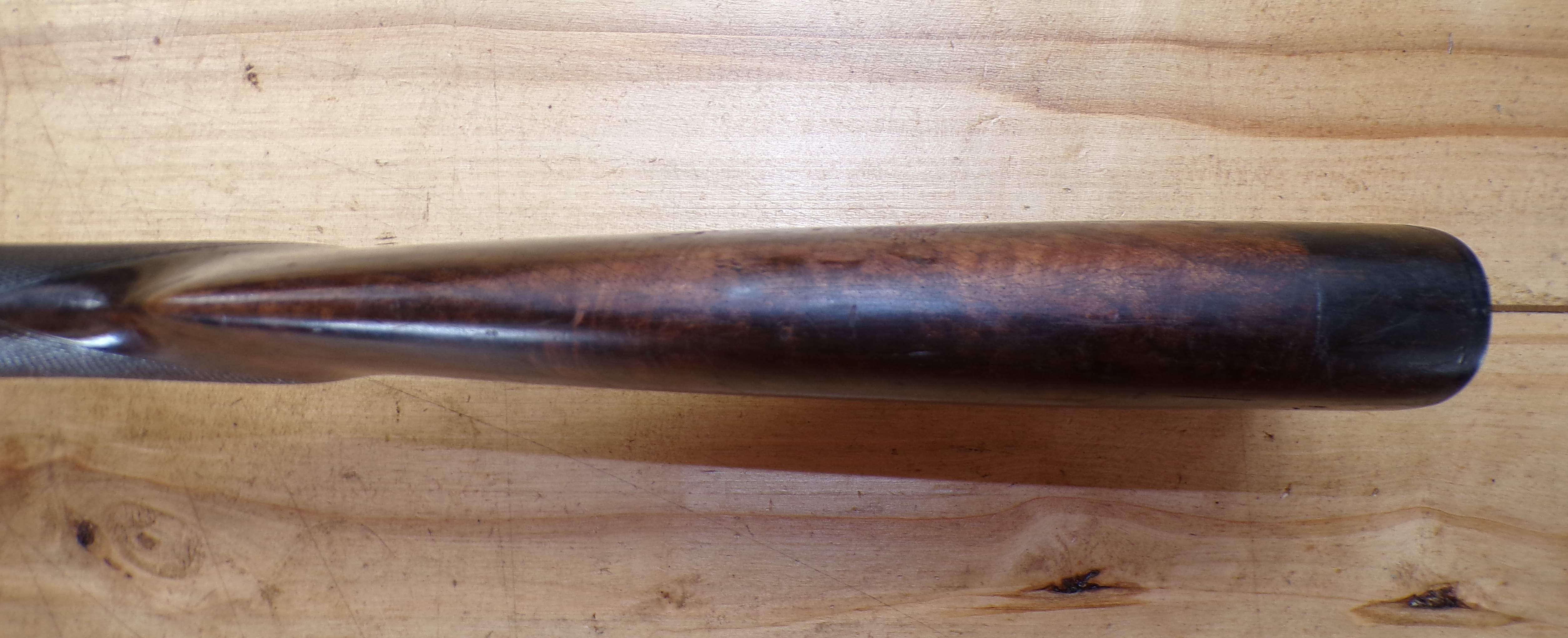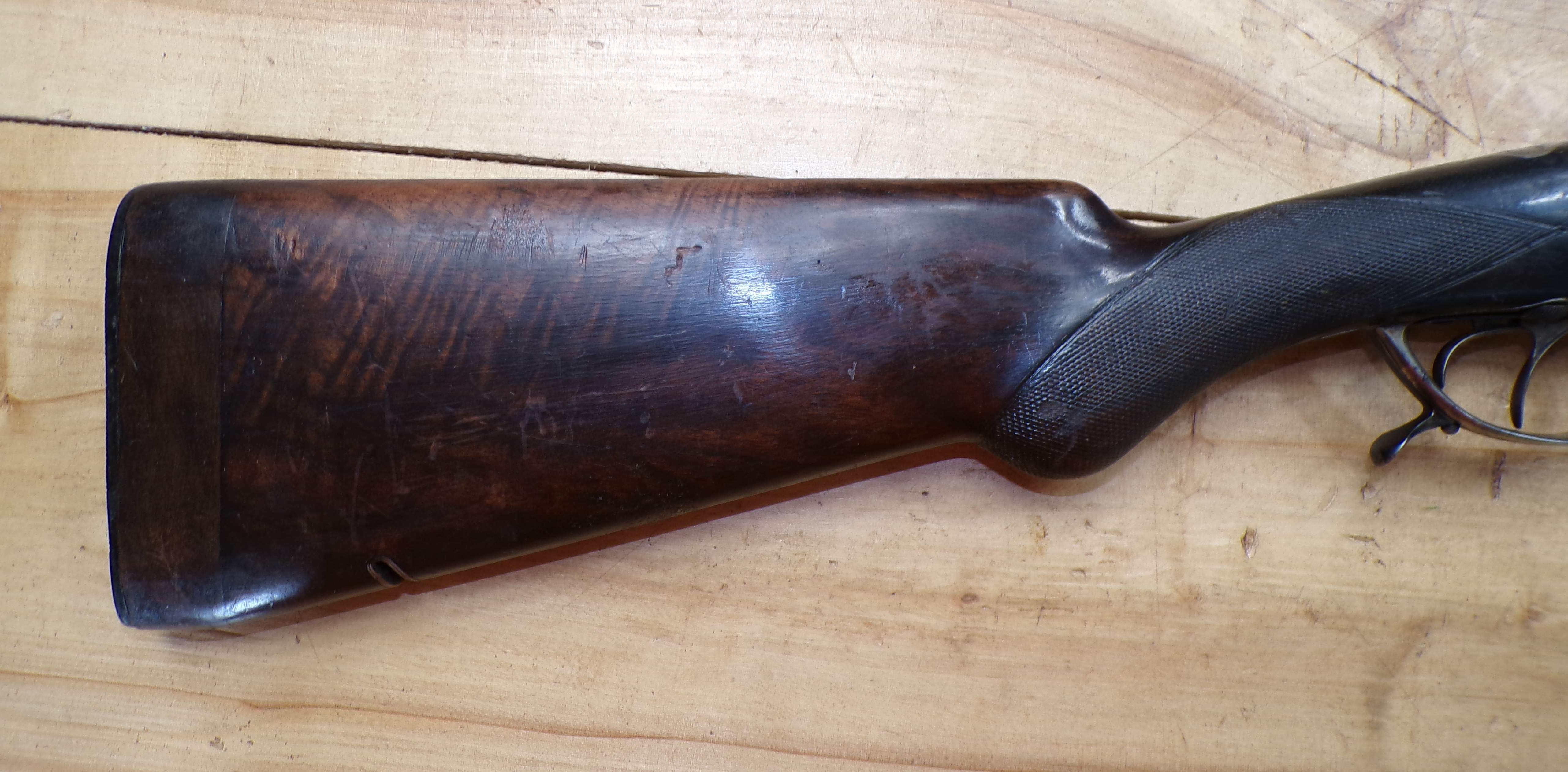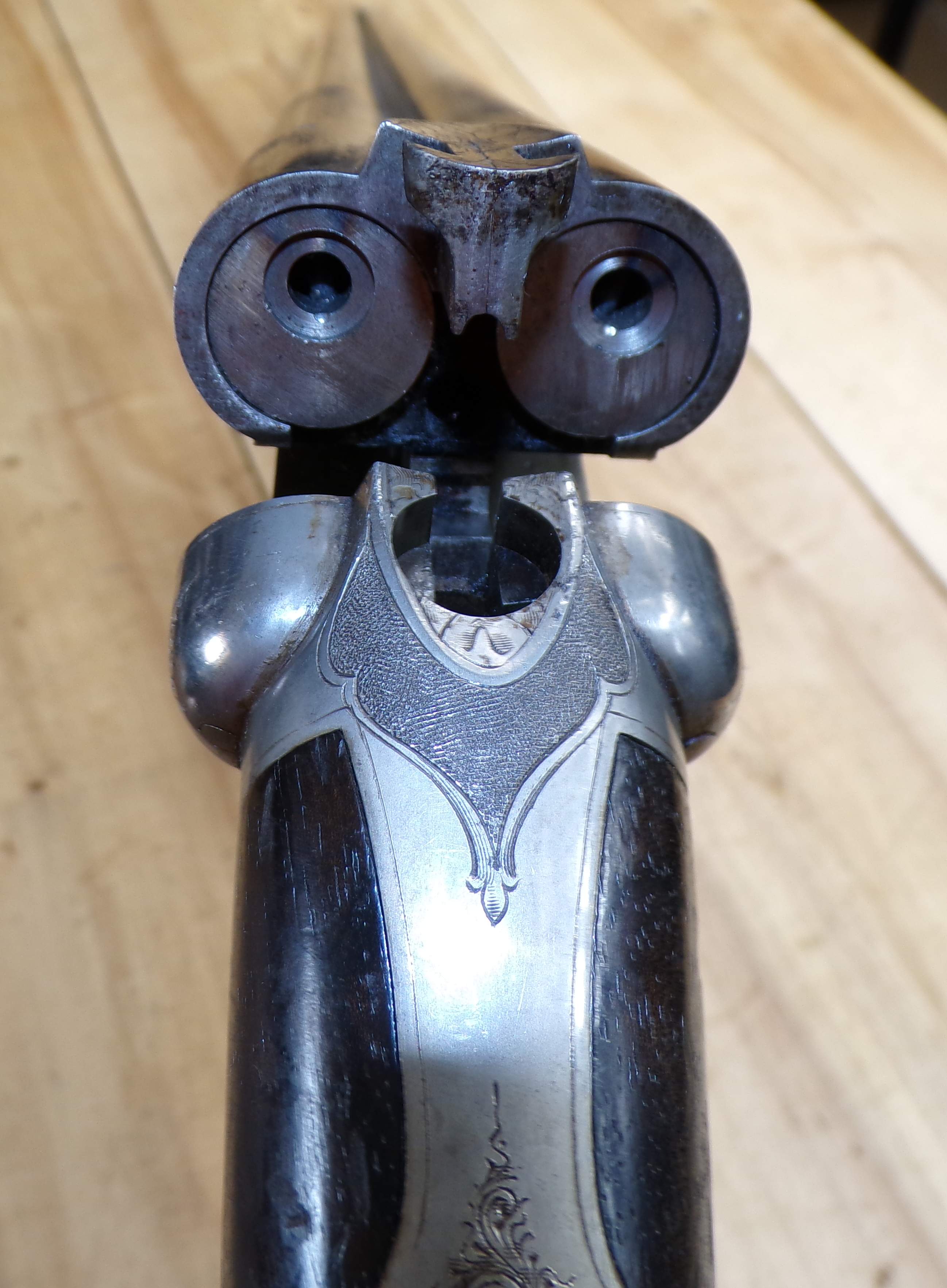 Stan dobry, na lufie są odciski płótna w które zawinięta przeleżała gdzieś lata. Ciekawy francuski system napinania kurków i otwierania luf za pomocą klucza umieszczonego przy kabłąku a nie na wierzchniej części basklili jak zazwyczaj. Wszystkie części oryginalne, drewno nie popękane. Płetwa kolby była przedłużana. Na lufie i baskili są stemple odbiorcze CIP.