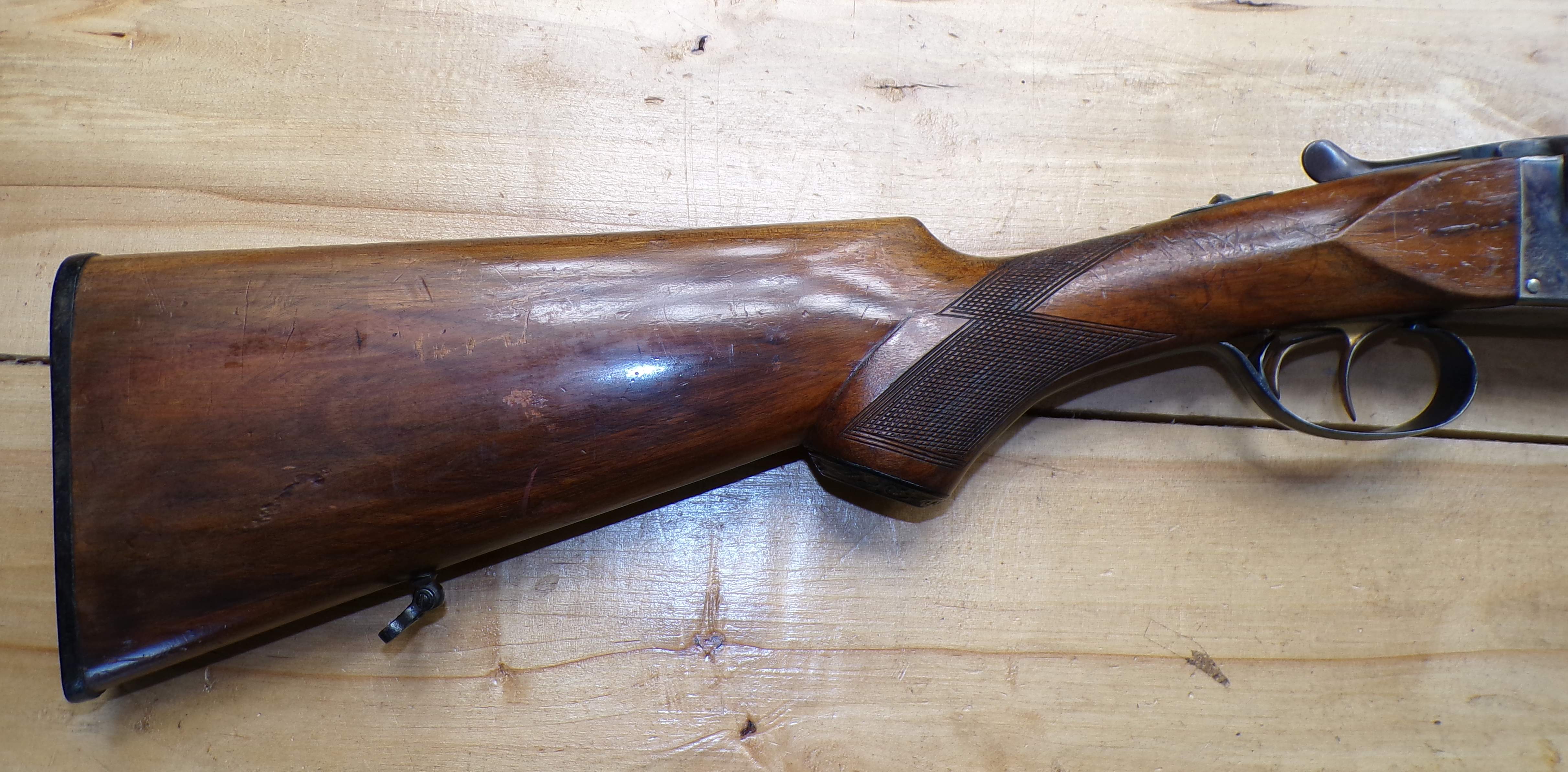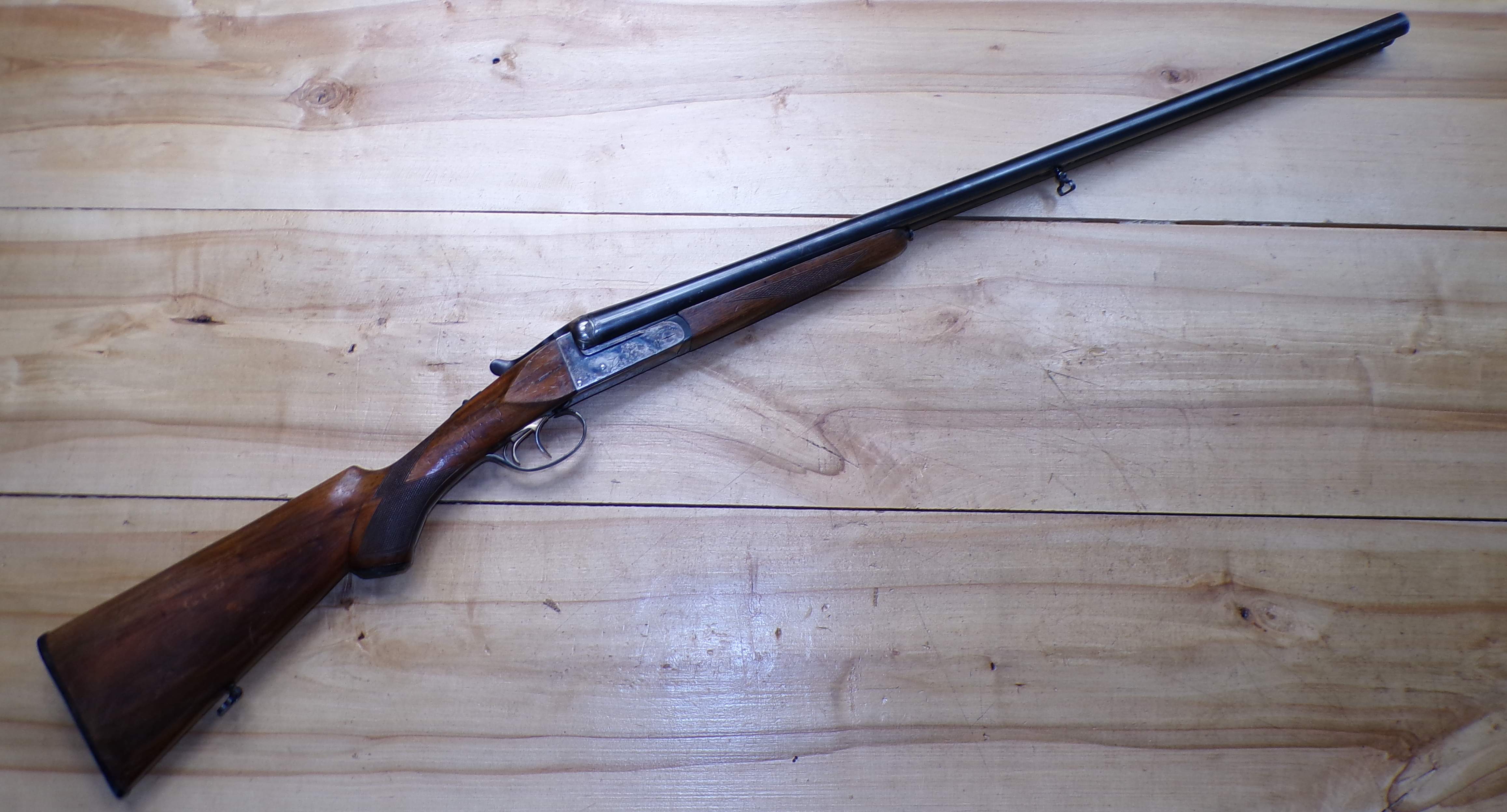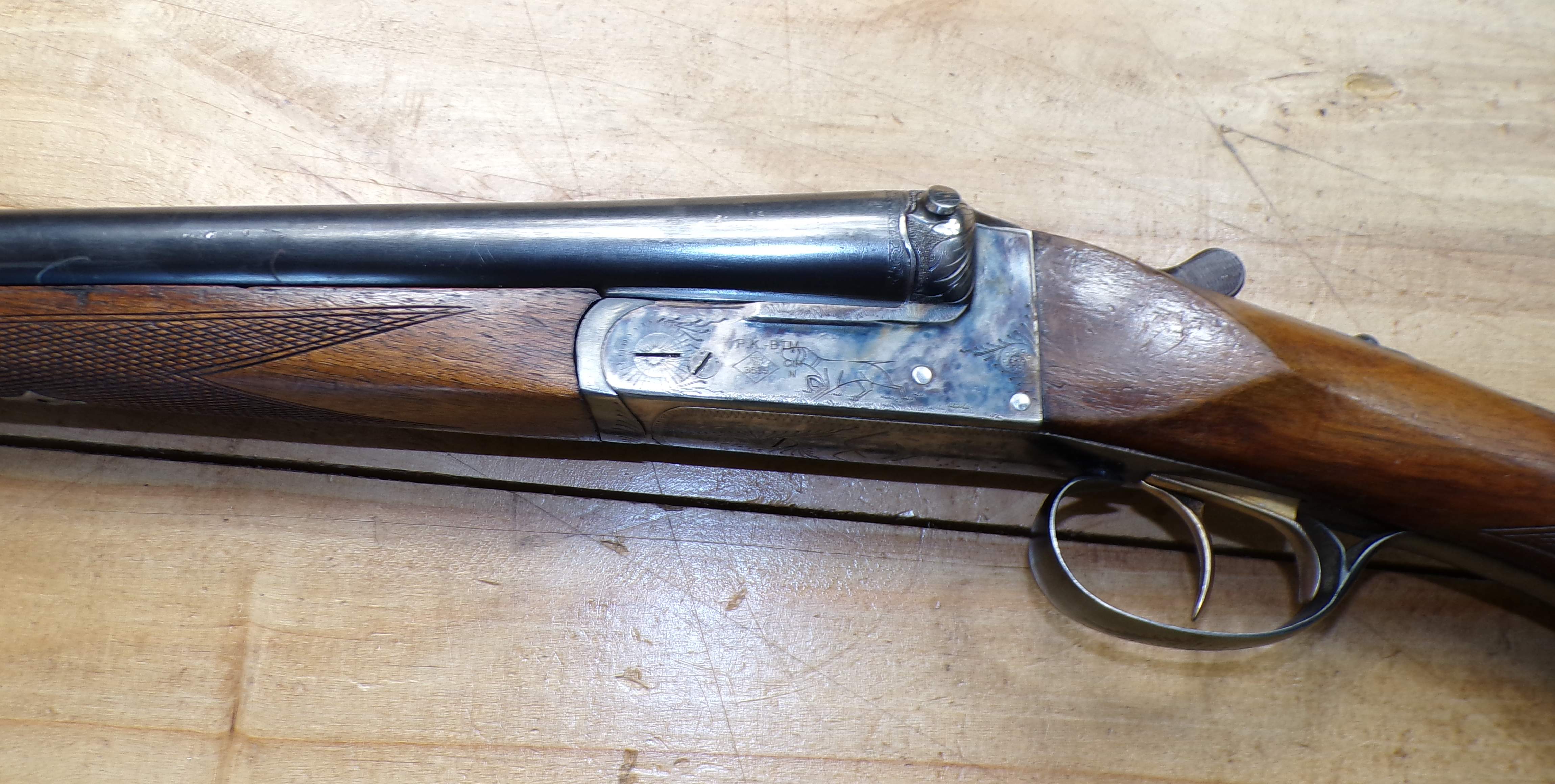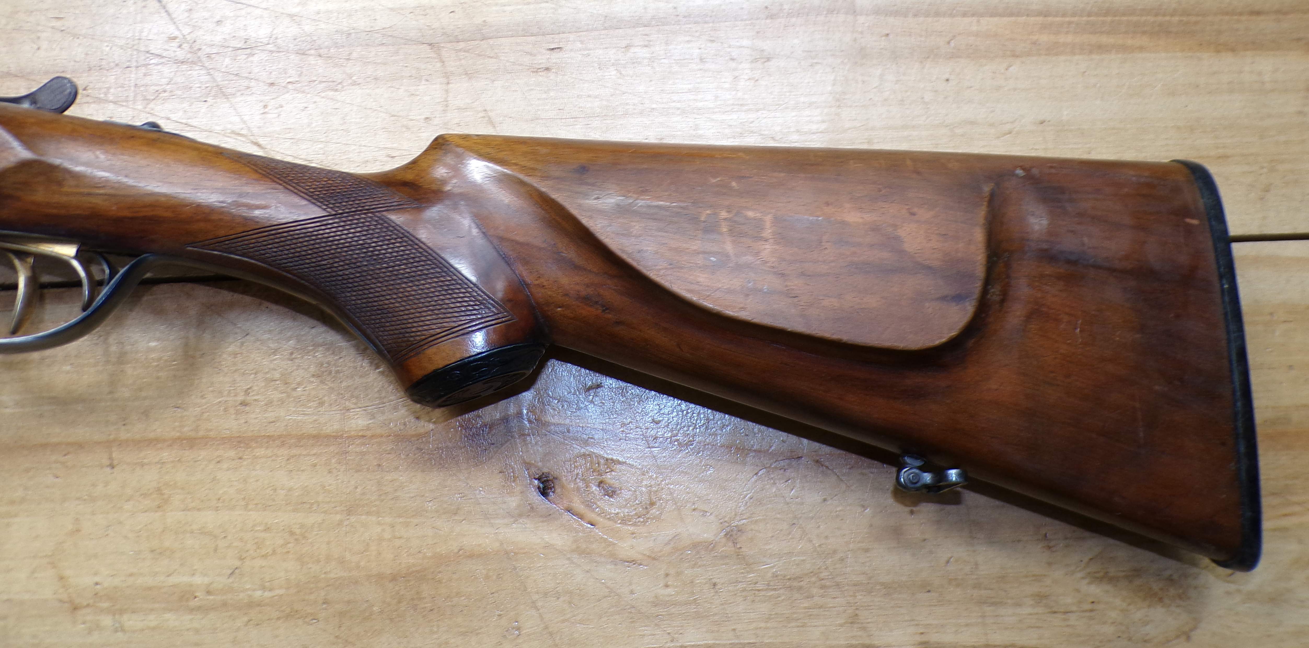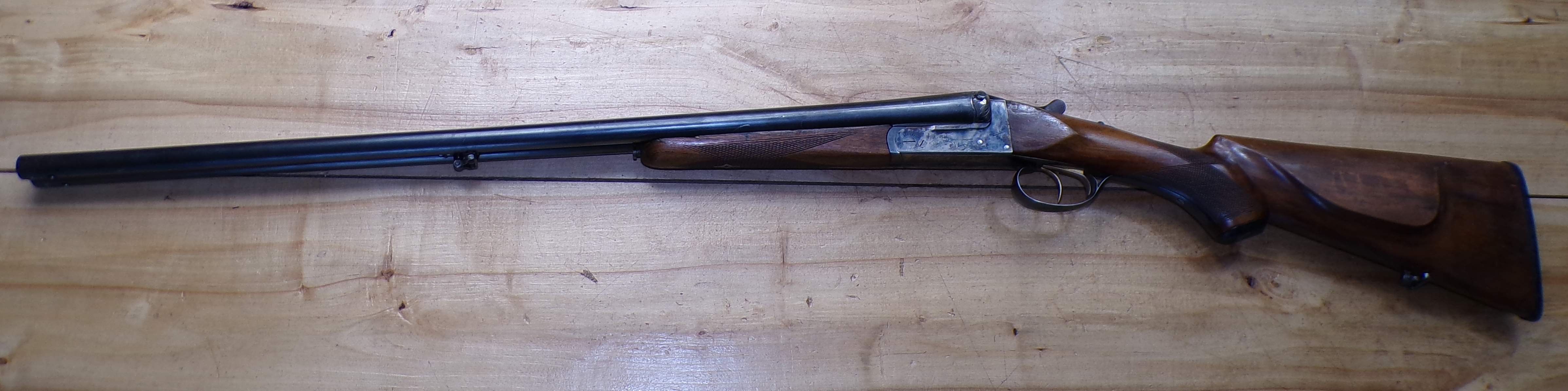 Stan bardzo dobry, seryjnie produkowana hiszpańska strzelba dwulufowa. Producent Miguel Larranaga, Placencia, na całości ślady normalnego użytkowania. Wszystkie funkcje (bezpiecznik, mechanizm spustowy, otwieranie i zamykanie) zachowane w stanie pierwotnym. Baskila nie przerabiana, wszystko jak w pierwotnym przeznaczeniu. Na lufie i baskili są stemple odbiorcze CIP.
