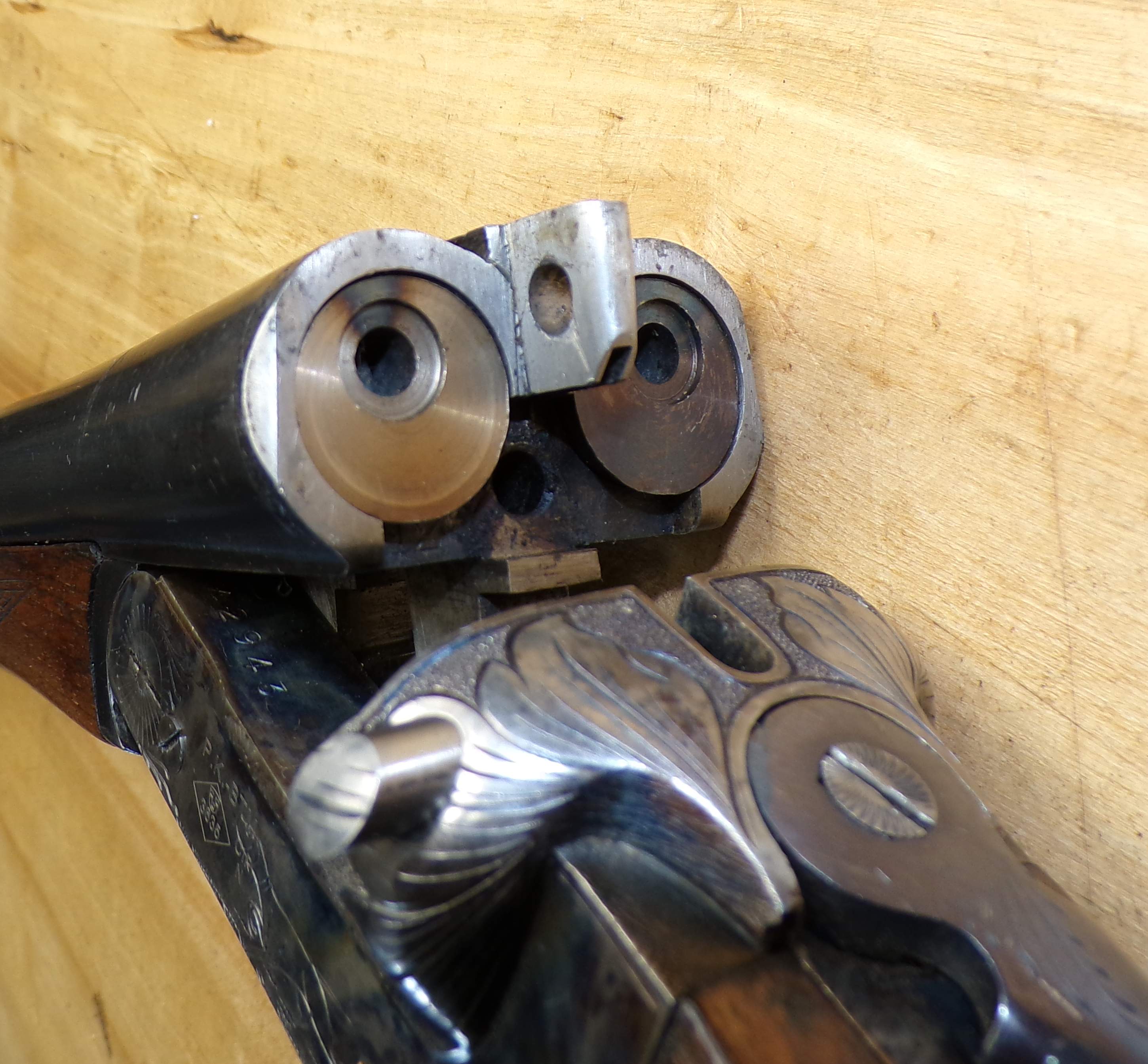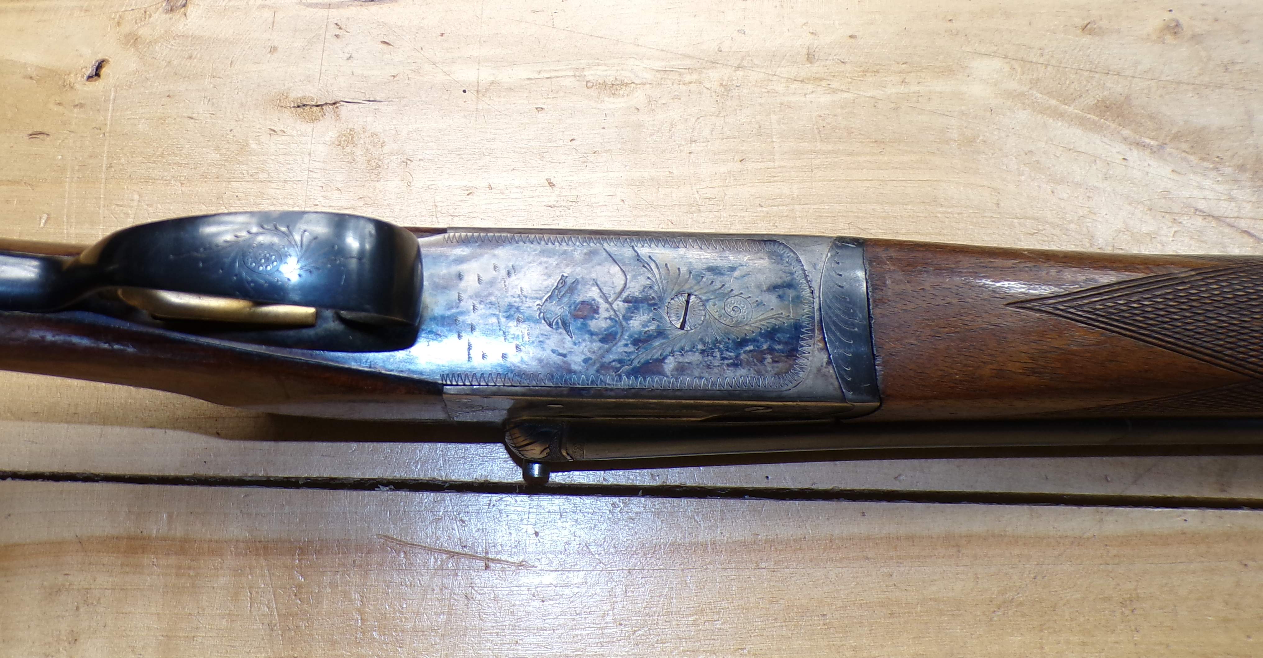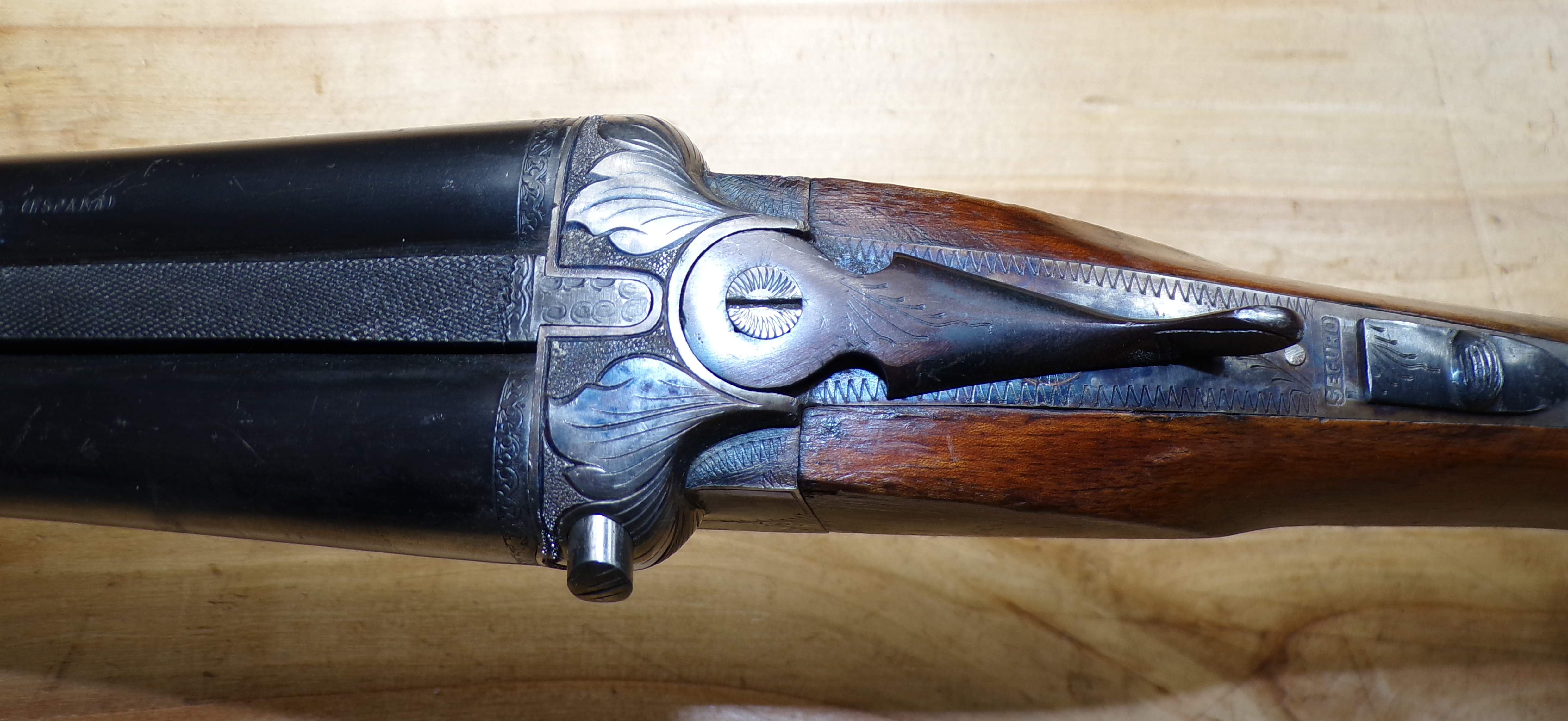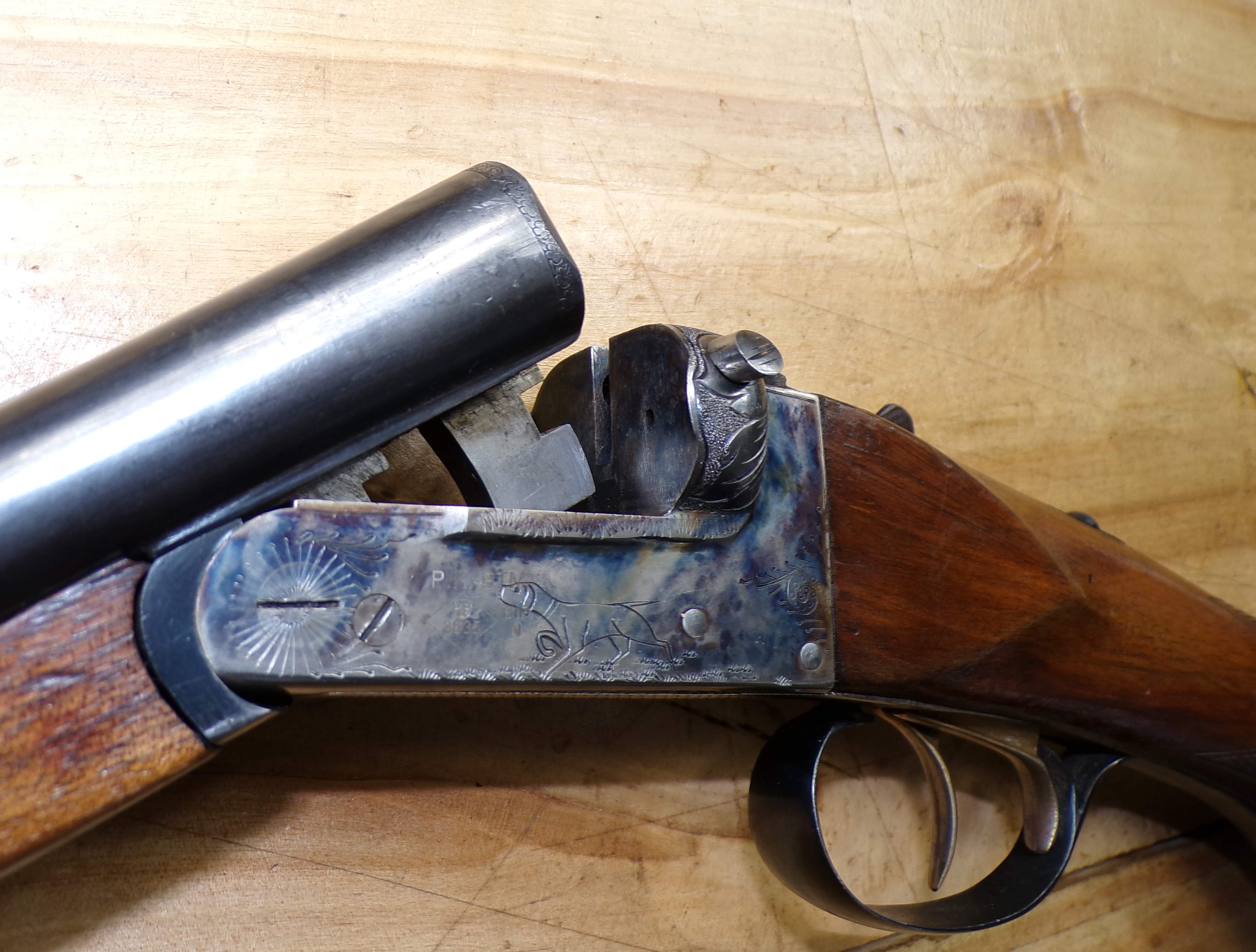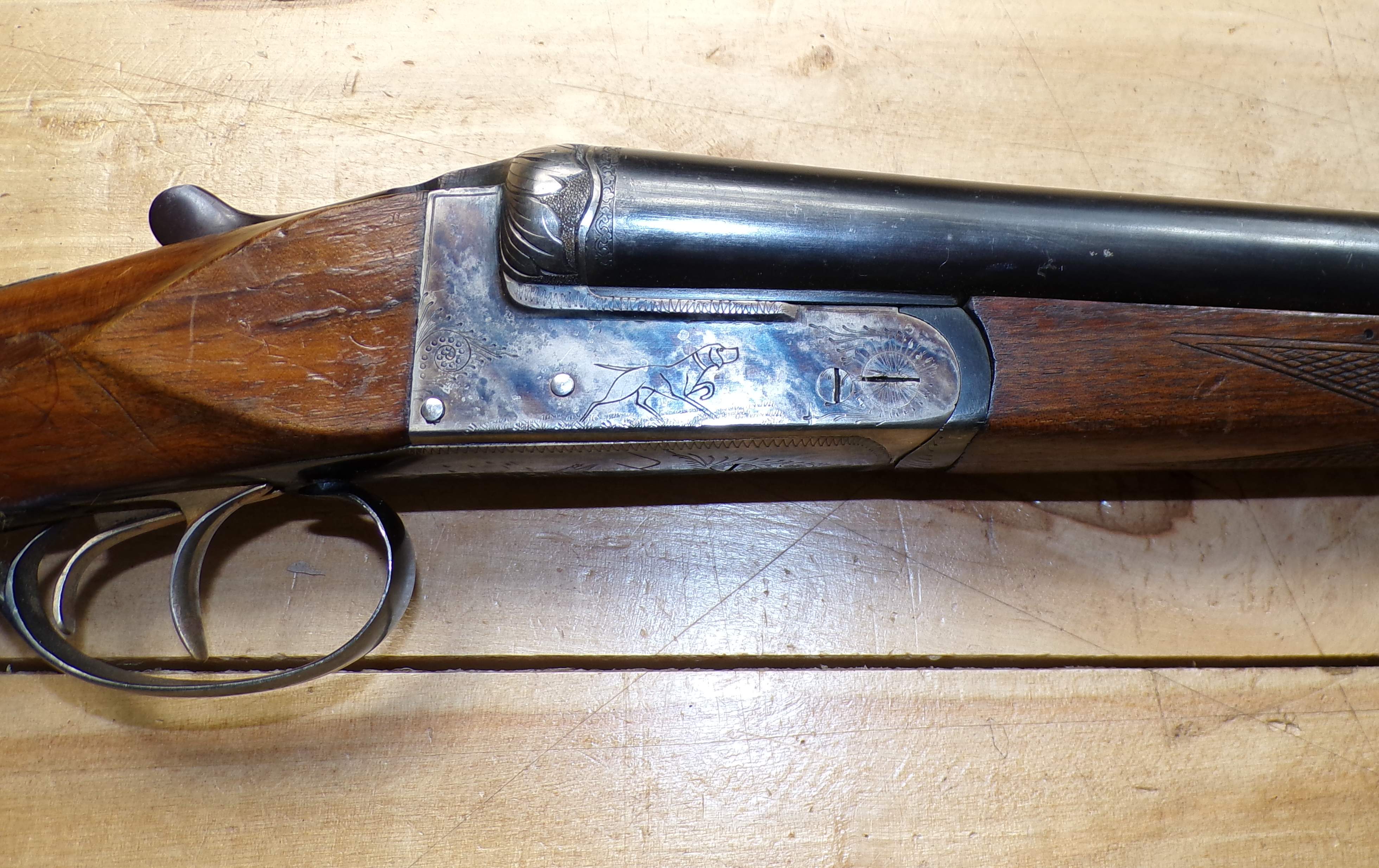 Stan bardzo dobry, seryjnie produkowana hiszpańska strzelba dwulufowa. Producent Miguel Larranaga, Placencia, na całości ślady normalnego użytkowania. Wszystkie funkcje (bezpiecznik, mechanizm spustowy, otwieranie i zamykanie) zachowane w stanie pierwotnym. Baskila nie przerabiana, wszystko jak w pierwotnym przeznaczeniu. Na lufie i baskili są stemple odbiorcze CIP.